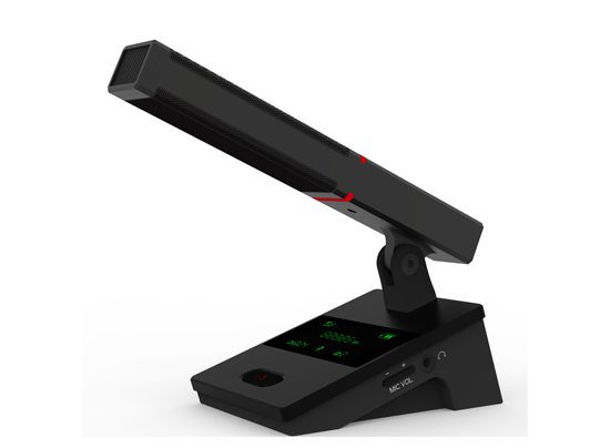 5.金属面板设计,内置天线,新颖¬庄重,带有红色灯环、按键灯显示话筒工作状态;